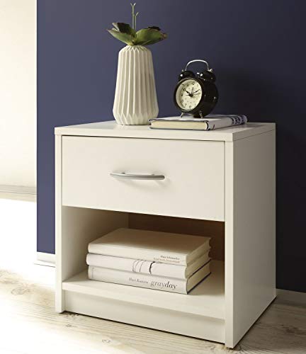 Comodino con Cassetto e Scompartimento Aperto, Bianco, 39 x 41 x 28 Bianco