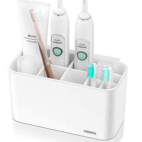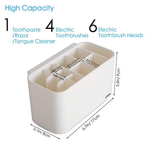 • Grande capacità e multifunzione: 4 slot per spazzolino da denti, 6 slot per la testa dello spazzolino elettrico, 1 slot di memoria; Fornisce un magazzino organizzato per una vasta gamma di articoli per l'igiene orale tra cui spazzolini da denti manuali / elettrici, tubi per dentifricio e filo interdentale.