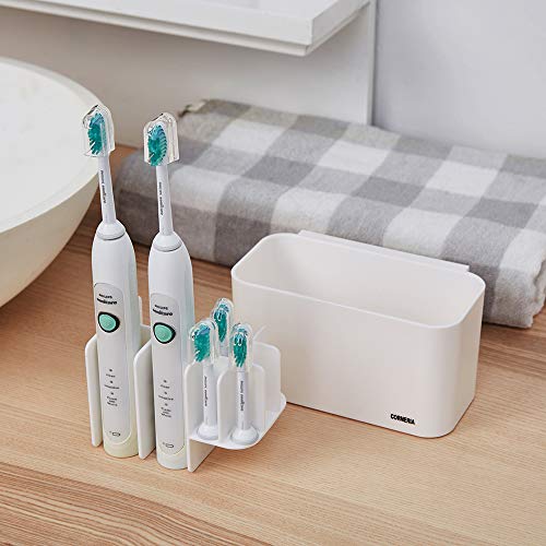 CORNERIA Portaspazzolino - Porta spazzolino da Muro per Il Bagno - Supporto per dentifricio (4 Slot per spazzolino da Denti + 6 testine per spazzolino Elettrico) (Bianco)