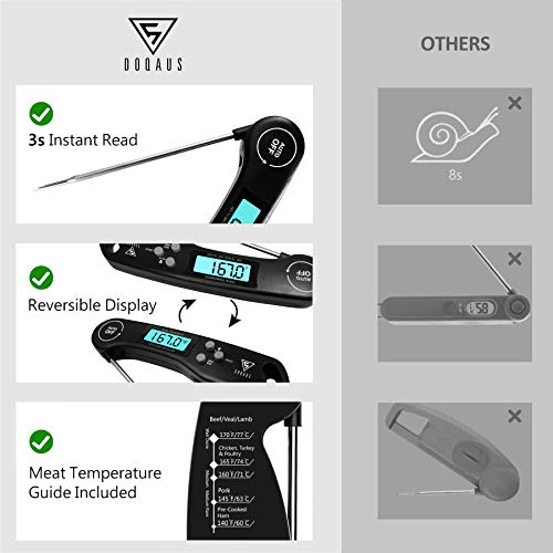 DOQAUS Termometro da Cucina, Lettura Istantanea 3S, Termometro Carne Digitale, Display rotante a 180 ° Schermo LCD con retroilluminazione, Sonda Lunga Anti-Corrosione,per Carne,BBQ,Vino,Latte,Alimenti