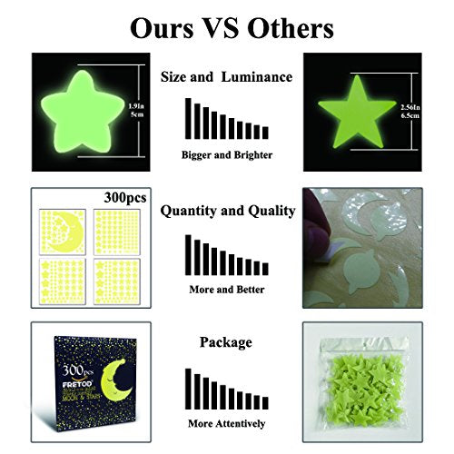 - ✔ LONGER LASTING: Stanco di stelle che si sbiadiscono e perdono dopo pochi minuti? FRETOD brillare splendente stella per tutta la notte! (È facile: basta accendere una luce luminosa vicina.