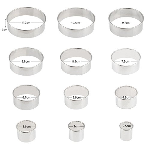 Gwhole Set di 12 Coppapasta Rotondo Acciaio Inox Tagliapasta Aperta Tondo Stampi per Biscotti Formine Coppapasta Tondi Anelli con Contenitore