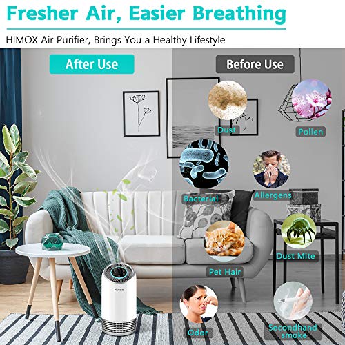 HIMOX Purificatore d'Aria Casa con H12 Filtro HEPA Purificatore d'Aria con Luce notturna a 7 colori Purificatore d'Aria di Allergeni,Polline,Germi,Dander di Pet,Polvere,28dB Rumore Basso