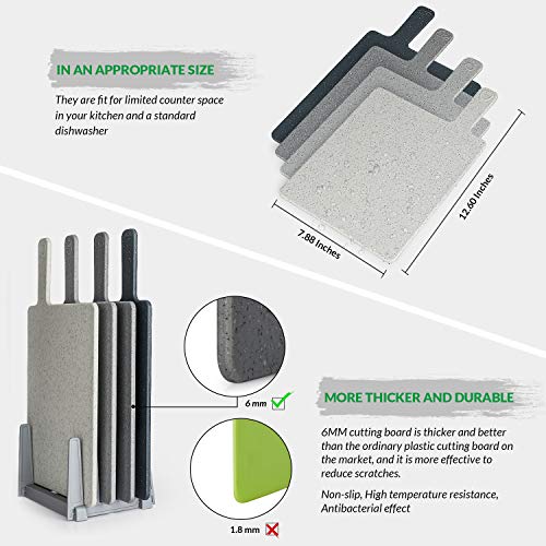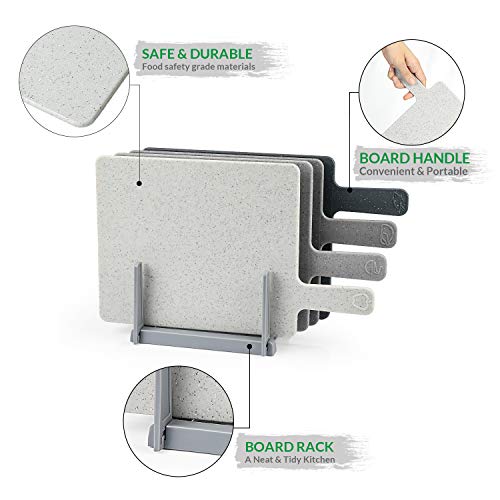 Hodekt Tagliere da Cucina Set di 4, Taglieri con Ripiano e Maniglia, Tagliere Plastica Senza Bpa, può Essere Usato in Lavastoviglie, Durevole, Resistenza alle Alte Temperature,AntiGraffio,Antiscivolo