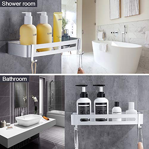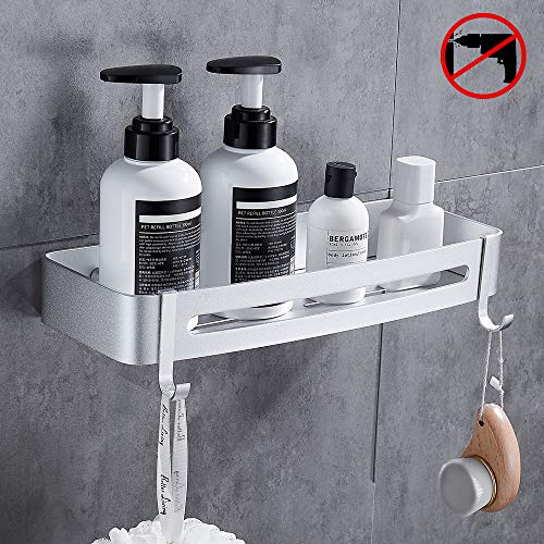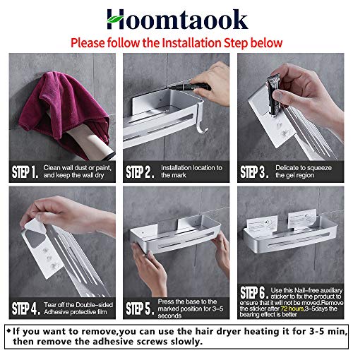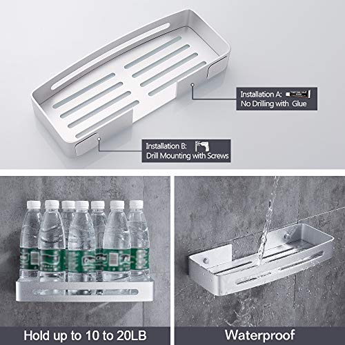 Hoomtaook Mensola da Doccia Organizzatore Senza Chiodi, Senza Danni Nastro Biadesivo, Alluminio, Cesto Anti Ruggine per Bagno e Cucina Argento