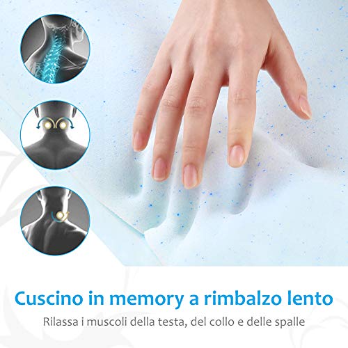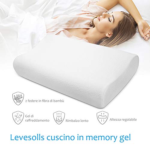 - 【Cuscino Memory Foam】Il cuscino cervicale Levesolls è realizzato in spugna reattiva, contiene particelle di gel miste a spugna, ha una forte permeabilità all'aria ed è molto confortevole. Ha una forte elasticità e morbidezza anche durante l'inverno, ottimo alleato durante il sonno.
