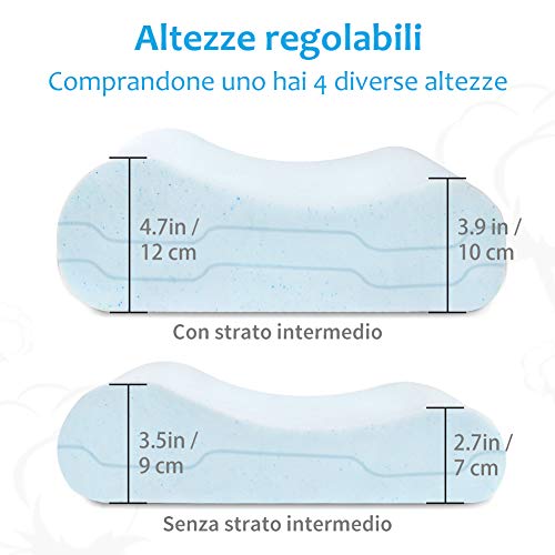 - 【4 Altezze Regolabili】Rispetto ad altri cuscini di questo tipo, il Levesolls cuscino memory gel ha 4 altezze regolabili. L'altezza iniziale del cuscino è di 12/10 cm, se viene rimossa la spugna centrale avrà un'altezza di 9/7 cm, così si possono ottenere 4 differenti altezze per il massimo comfort.