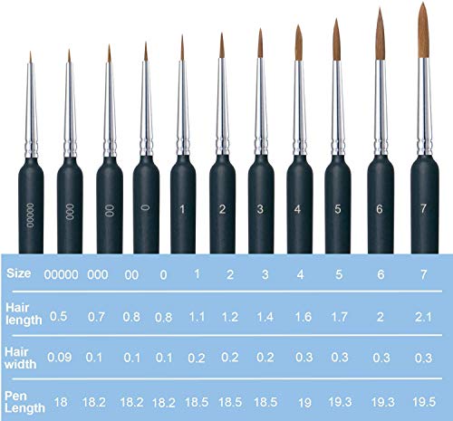 - 【11 Taglie】11 Misure diverse (00000/000/00/0/1/2/3/4/5/6/7), 11 pennelli in totale.