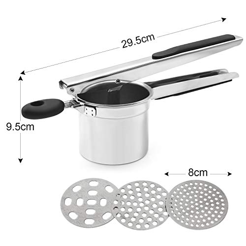 LinStyle Schiacciapatate, Acciaio Inox Schiacciapatate - con 3 Dischi Intercambiabili Pressa Patate Professionale per Purè di Patate Liscie, Marmellata, Verdure E Frutta