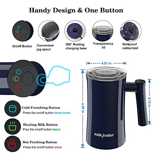 - ☕UN Pulsante, 3 Funzioni - Il montalatte elettrico ha 3 differenti impostazioni: schiuma fredda, schiuma calda e riscaldamento. Capacità massima: 160 ml per la produzione di schiuma calda/fredda di latte, 350 ml (per latte caldo).