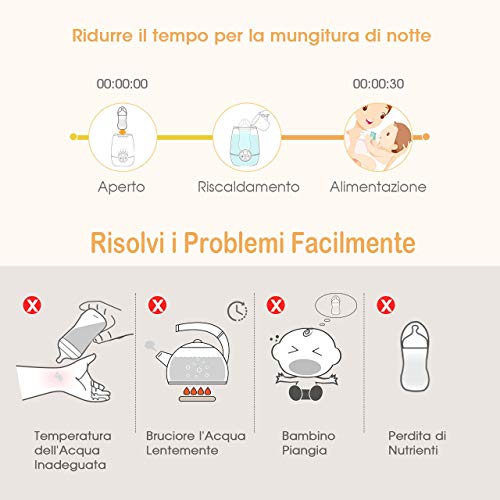 - UTILIZZO SICURO A NOTTE: Con l’auto-spegnimento e l’allarme acustico, potrebbe utilizzarlo in maggior sicurezza. La materia di BPA FREE non è tossica e protegge il bambino come Lei è.