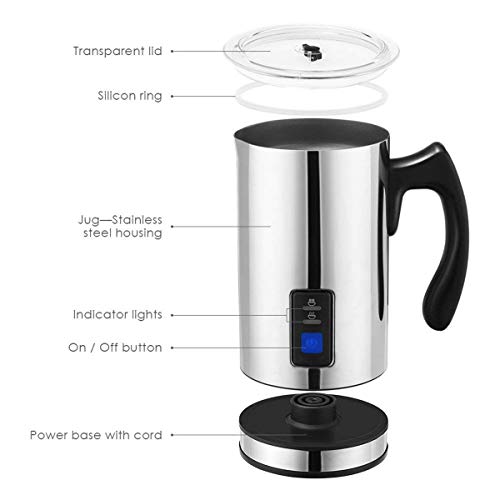 - 【 Design perfetto 】 ad alta potenza di 550 W, con tecnologia silenziosa, non ci sono suoni o vibrazioni durante il funzionamento. Ha un paio di gommapiuma extra gratuita per una schiuma spessa e abbondante. Il LED si illumina per mostrare lo stato del riscaldamento, del raffreddamento o del latte caldo. Questo dispositivo conserva meglio la temperatura quando la temperatura raggiunge il valore dell'impostazione di 65 ± 10 °C, si spegne automaticamente.