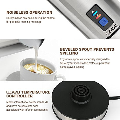 OZAVO Montalatte Elettrico Montalatte Automaticoin Acciaio Inossidabile Controllo Temperatura Schiuma per Latte e Caffè Calda e Fredda