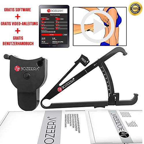 - ✅ MANUALE, SOFTWARE E VIDEO DI INTERPRETAZIONE GRATUITO: Riceverai il manuale BOZEERA in italiano e i dati per accedere al video online, che ti dice esattamente dove fare le misurazioni con la pinza misura grasso e come farle al meglio con un supporto visivo di foto e immagini. Con il praticissimo software potrai immettere facilmente i risultati misurati e vedere immediatamente la percentuale di grasso corporeo che hai. L'accesso al software e al video si trovano nel manuale.