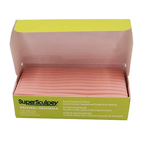 Descrizione SCULPEY-Super Sculpey Polymer Clay. America's original oven-bake clay! Sculpey is soft and pliable, works and feels like ceramic clay but will not dry out when exposed to air. The semi-transparent ceramic-like appearance of this clay, once baked makes it perfect for exposed flesh parts of home-made dolls and figurines. Shape, bake and once cool can be sanded, drilled, carved, glued, inked, painted with water based acrylics or Sculpey Brand Glaze. Color: Beige-Pink, 16oz/453g each. Conforms to ASTM D4236. Recommended for ages 8 and up. WARNING: Choking Hazard-product forms small parts. Not for children under 3 years. Made in USA. Avviso di sicurezza not suitable for children under 36 months