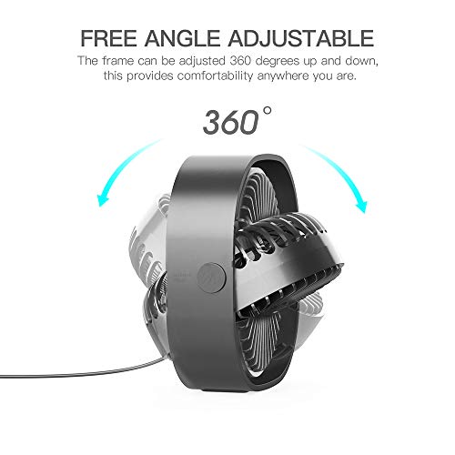 - ANGOLO LIBERO REGOLABILE: Potrebbe essere necessario inclinare e regolare la ventola in modo da poter godere della brezza fresca in base alle proprie esigenze. La cornice può essere regolata a 360 gradi su e giù. Ciò fornisce la comodità ovunque tu sia.
