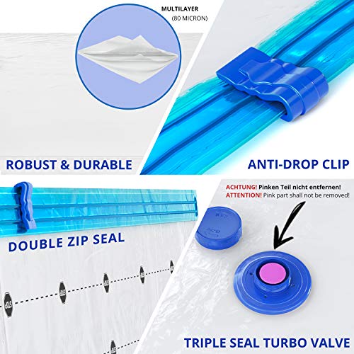 - ✅ 100% ARIEGGIATO E DOPPIO SIGILLO PER OTTIMA QUALITÀ - Grazie alla nostra plastica di alta qualità, particolarmente resistente, alla valvola di sicurezza e alla doppia chiusura ermetica, le nostre borse sono a tenuta d'aria al 100% e proteggono efficacemente i vostri tessuti da acqua, sporco, muffa e batteri - è garantito!