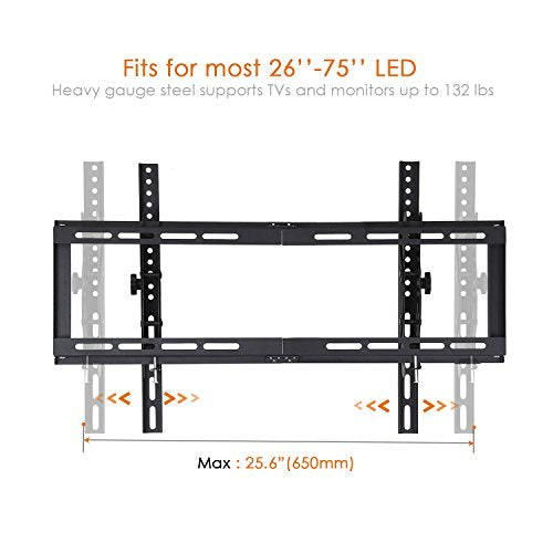 SIMBR Staffa TV a Parete Supporto a Muro per 26 a 75 Pollici LCD LED Plasma TV Super-forza Capacità di carico Max 60KG, Inclinazione Libero ±15 °, Max VESA 600x400mm e Livella Magnetica a Bolla