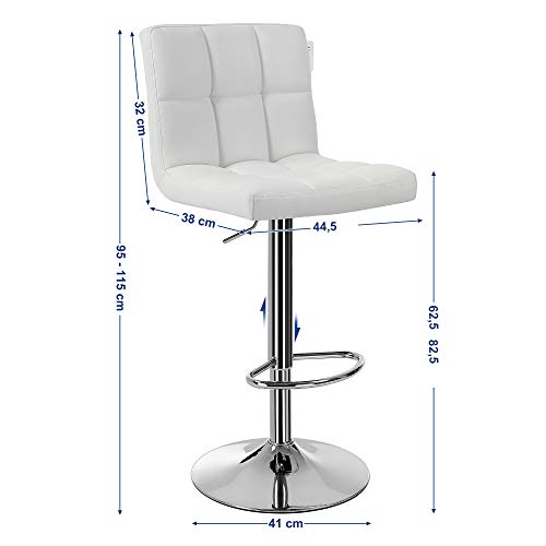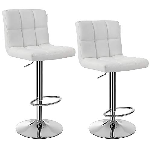 Songmics 2 x Sgabello da Bar/Cucina, Similpelle, Regolabile e Girevole Bianco