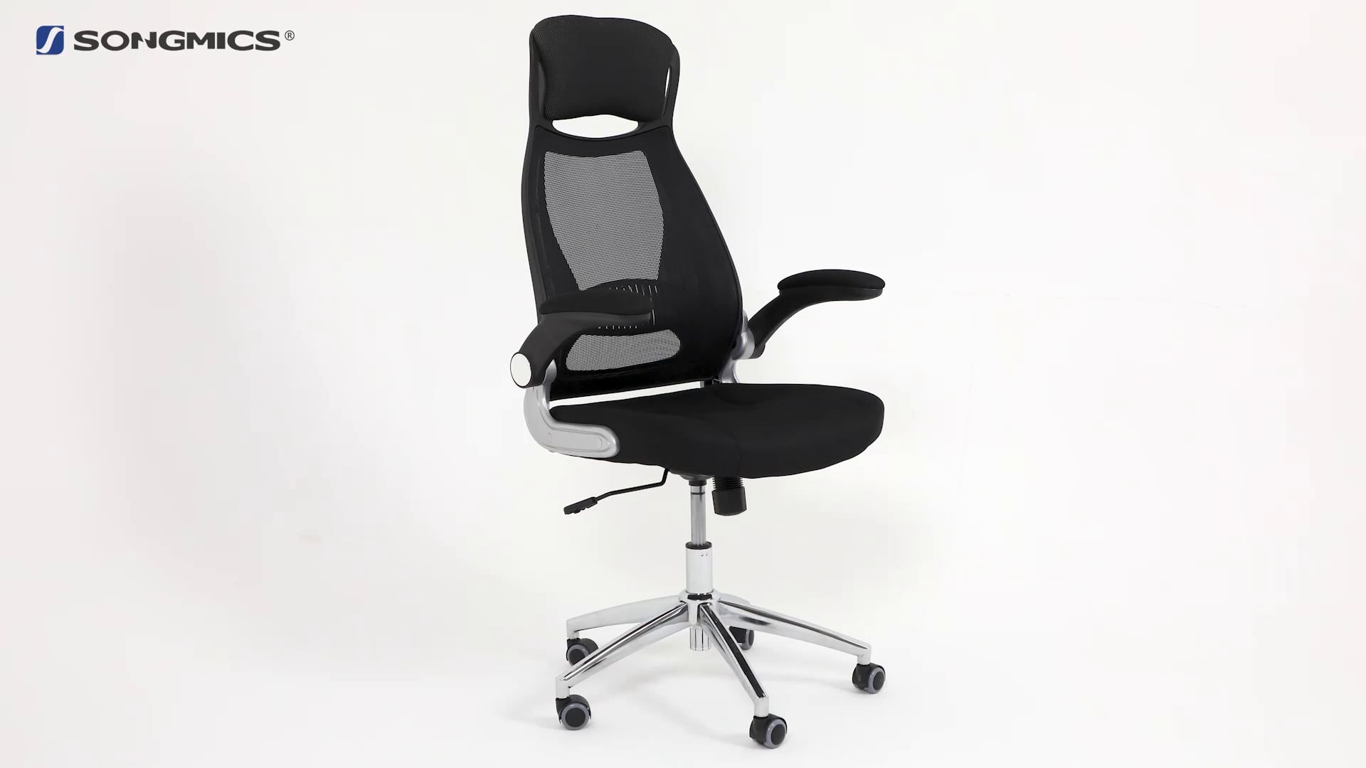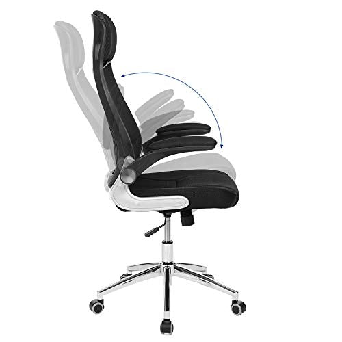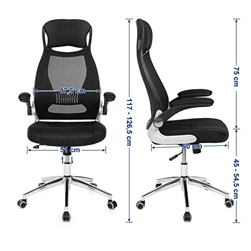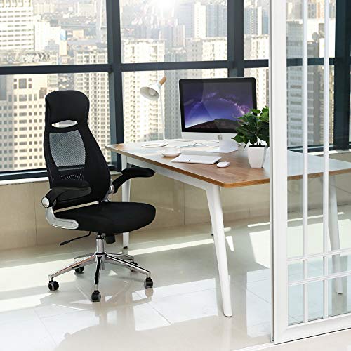 SONGMICS Sedia da Ufficio Poltrona Girevole e Regolabile con Poggiatesta Braccioli Pieghevoli Inclinazione Oscillante e Fodera in Rete Nero OBN86BK
