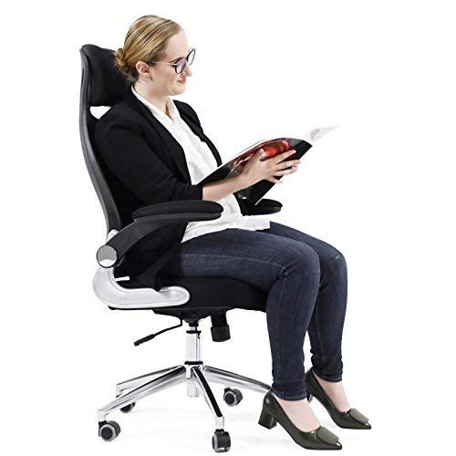 - Regolabile - I braccioli ben imbottiti con fodera in rete (altezza dalla seduta di 22 cm) offrono supporto alle braccia, e sono pieghevoli verso l'alto per mettere la sedia sotto la scrivania risparmiando spazio; l’altezza della sedia è regolabile da 45 a 54,5 cm; grazie al meccanismo oscillante, la regolazione della resistenza dello schienale è in rapporto al peso corporeo per rilassarsi (Adatto a persone sotto i 175 cm di altezza)