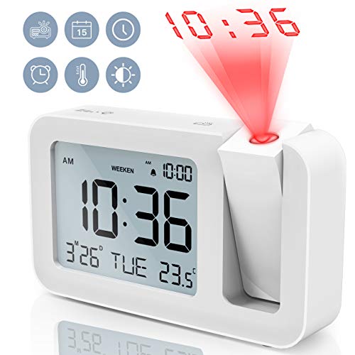 - 【DISPLAY MULTIFUNZIONE】 Sveglia di proiezione il termometro per la casa fornisce misurazioni più accurate, visualizzate con la temperatura interna, consente di essere consapevoli se sono necessarie delle regolazioni. Come pigro sveglia digitale, luce notturna, calendario perpetuo. Lo schermo include mese, settimana, data. Sveglia perfetta per camere da letto, mantiene ottimali le condizioni di vita di voi e della vostra famiglia.