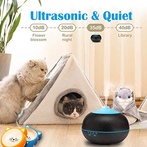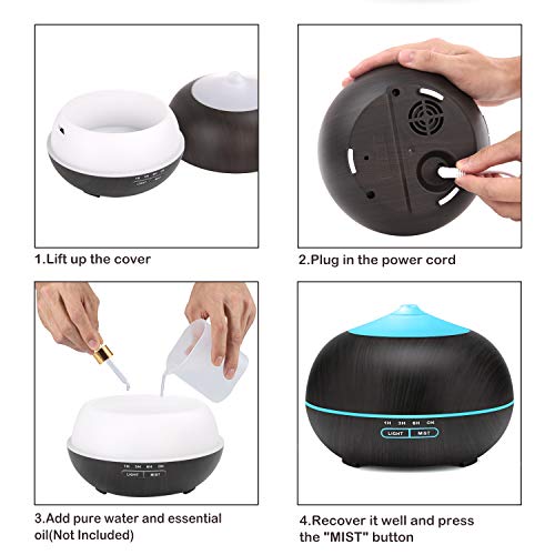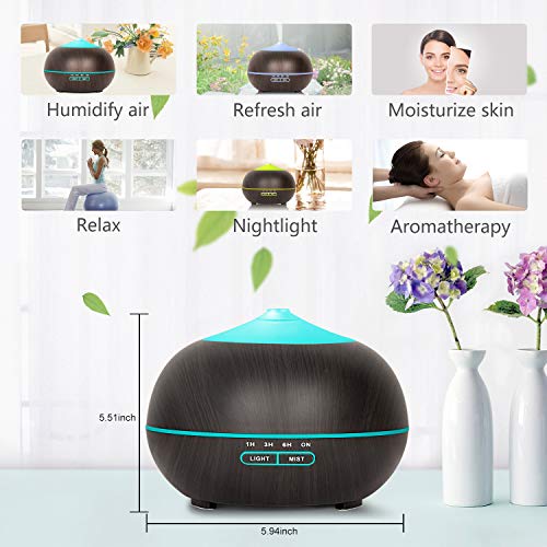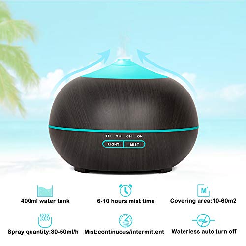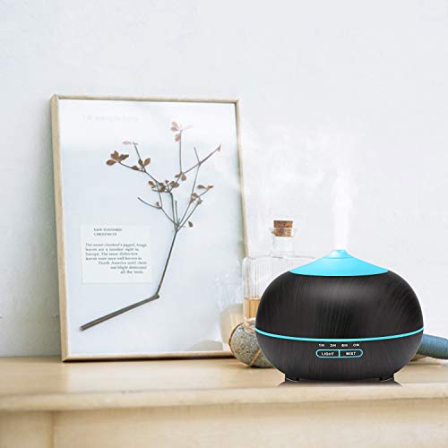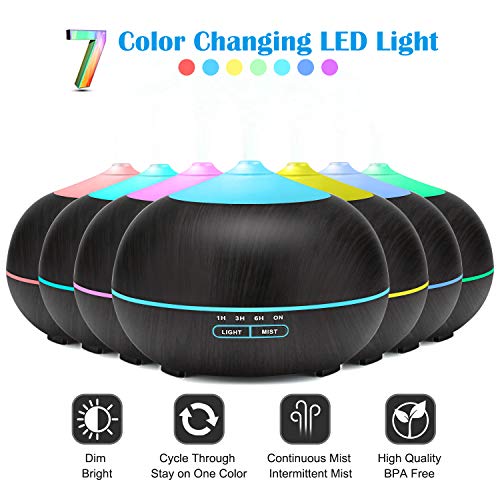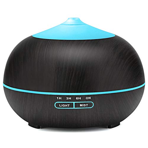 Tenswall Diffusore Atomizzatore di essenze e aromi ad Ultrasuoni 400ml,Umidificatore con 7 colori LED selezionabili, Purificatore aria per Yoga, Camera da Letto, Soggiorno, Sale Conferenza-Nero