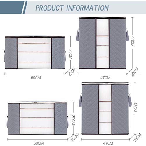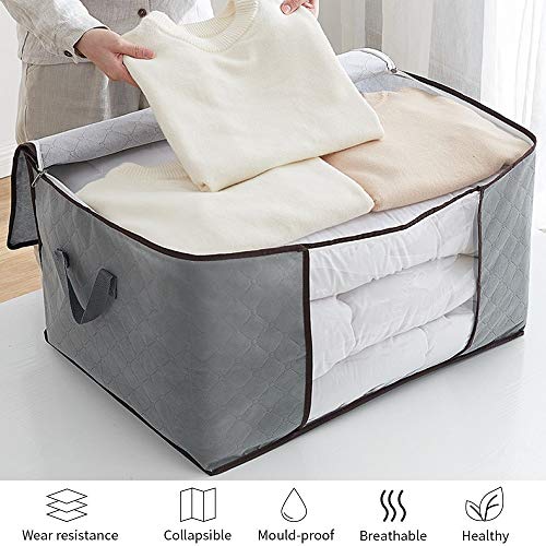 Tonsooze Pieghevole Borsa Organizzatore, 4 PCS Scatole per Armadio Salvaspazio Grande capacità Organizzatore Traspirante con Manico Rinforzato, per Trapunte Coperte Biancheria da Letto, Grigio