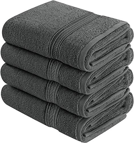 - Il set comprende quattro lussuosi asciugamani di cotone di grandi dimensioni in grigio di 41 x 71 cm ciascuno.
