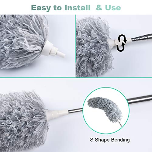 - Super capacità di aspirazione: realizzata in microfibra di alta qualità + acciaio inossidabile di alta qualità, è resistente e non arrugginisce. Lo spolverino telescopico assorbe saldamente particelle di sporco, polline, polvere, peli umani e animali e ragnatele.