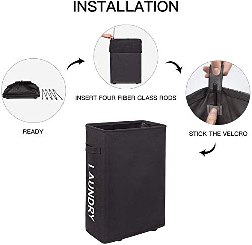 WOWLIVE 45L Cesto per Biancheria Stretto Cestino Alto e Nero