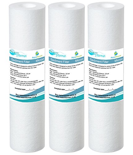 3x AquaHouse 10" Cartuccia filtro acqua sedimenti per osmosi inversa, palo alimentato ad acqua e filtrazione del Partictle, adatta a custodie per filtri standard da 10" - 5 micron