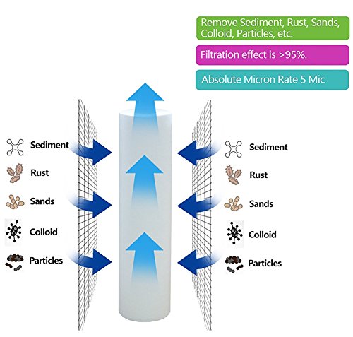 - Polipropilene ad alta qualità 5 La filtrazione a micron di particelle rimuove i livelli di particelle di ruggine, sporcizia, sabbia e sedimenti superiori a 5 micron.