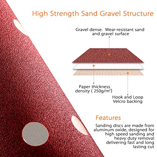 80PCS 125mm 8-Hole Hook and Loop Levigatura Disco Sandpaper Adatto ai modelli Adatto per levigatrice orbitale casuale, come: Black & Decker BDERO100, Bosch ROS20VSC, 3725DEVS, ROS10, DeWalt DWE6421K, DWE6423K, Makita BO5041K, BO5031K, PORTER-CABLE 382, Ryobi RS290G, SKIL 7492-02 Caratteristiche 1. Il retro della carta vetrata con gancio e anello rende la rimozione e la sostituzione facile e veloce, aumentando la produttività e offrendo al contempo finiture superficiali migliori. 2. Il rivestimento semiaperto porta a un modello di graffio uniforme e costante. 3. Il rivestimento speciale allo stearato è progettato per prevenire l'intasamento e il carico. 4. Il sistema di legame in resina ad alta resistenza fornisce un supporto di granella superiore. 5. Pre-punzonato con 8 fori per l'estrazione uniforme della polvere. La confezione include 10 x dischi abrasivi di 40 grana 10 x dischi abrasivi di 80 grana 10 x dischi abrasivi di 120 grana 10 x dischi abrasivi di 240 grana 10 x dischi abrasivi di 320 grana 10 x dischi abrasivi di 400 grana 10 x dischi abrasivi di 600 grana 10 x dischi abrasivi di 800 grana (80 pezzi in totale)