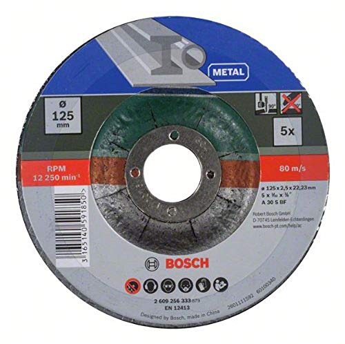 Taglia:125 x 22.23 x 2.5 mmMola Taglio Metallo 125x22,23x2,5 mm a centro depresso, un pacco con 5 pezzi