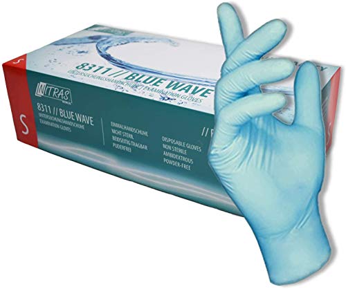• Guanti monouso in nitrile blu – non sterili e senza talco