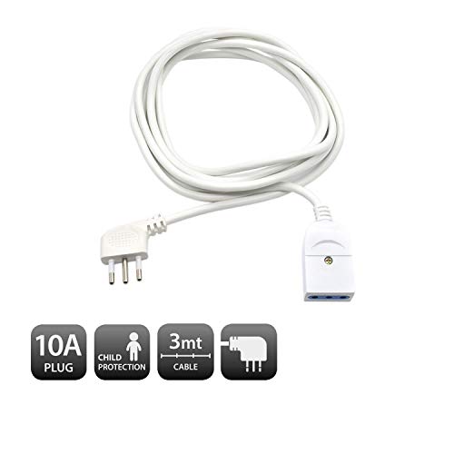EW3800 - Prolunga elettrica bianca 3mt, spina Italiana 10A 90° Bianco - Ilgrandebazar