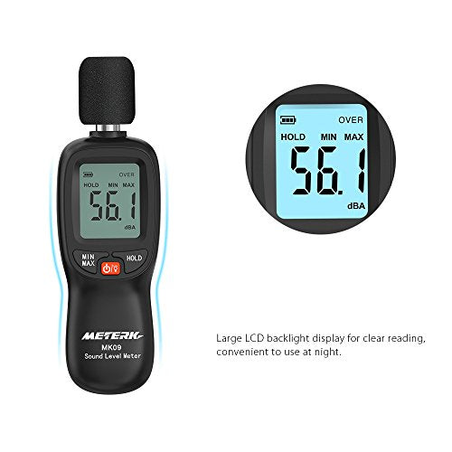 Fonometro Meterk Fonometro Gamma 30-130dB a Risposta Rapida Ampio Schermo LCD con Retroilluminazione