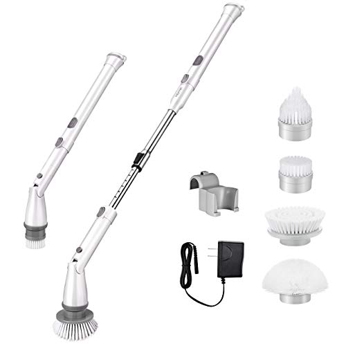 Homitt Spazzola per Pulizia,Spin Scrubber con 4 testine Regolabili e Bianco