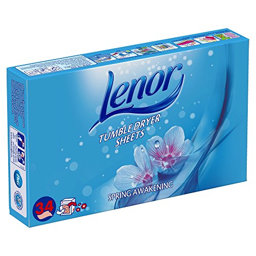 Lenor - Confezione da 3 di 34 fogli "Spring Awakening" per asciugatrice, colore: blu. Utilizzare uno o due fogli per ogni carico dell'asciugatrice. Incredibile profumo di fresco e neutralizzazione dell'elettricità statica. I fogli Lenor offrono morbidezza e freschezza quando si asciugano i capi di abbigliamento in asciugatrice. I tradizionali ammorbidenti liquidi evaporano con il calore dell'asciugatrice. I fogli Lenor per asciugatrice sono attivati dal calore. I tuoi vestiti saranno freschi come il giorno.