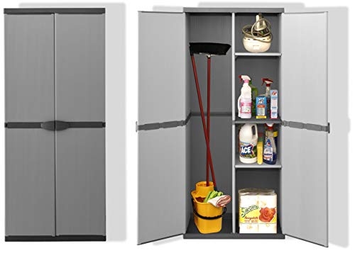 Armadio portascope, colore grigio. Dimensioni: 68 x 40 x 168 cm.