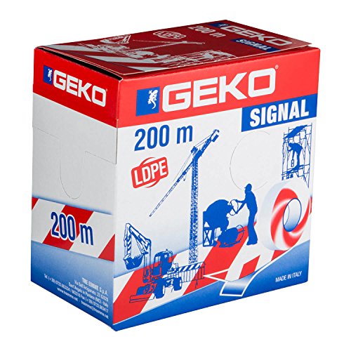 Nastro per segnalazioni di colore rosso e bianco, dimensioni 70 mm x 200 metri. Per delineare zone. Di alta qualità.