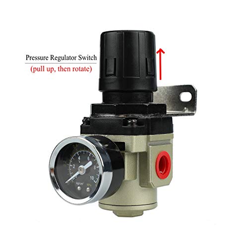 Colore:3/8 Pressure Regulator Benvenuti nel nostro negozio! :) Il nostro negozio è un negozio specializzato per utensili ad aria compressa! Se hai domande, puoi contattarmi direttamente. Io risolverò per te in ogni caso. Il nostro indirizzo e-mail è: Descrizione del prodotto: Questo è un regolatore d'aria da 3/8 "pollici usato per cambiare la pressione dell'aria dell'uscita del compressore d'aria. Regolatore di pressione è ampiamente applicato al sistema pneumatico o ad altri strumenti pneumatici. Forniamo anche staffe per la stabilità. Lo strumento è facile da installare e rimuovere. Specifiche: Pressione di esercizio: 0-10bar (0 - 1 mpa) Temperatura del liquido di ambiente: 5-60 ℃ Gamma di controllo della pressione: 0,02 ~ 0,2 mpa Portata nominale: 2500 L/min Presa d'aria: 9.525 mm (3/8 ") Nota: È consigliabile avvolgere uno strato di nastro sigillante sulla connessione filettata e utilizzare il nastro sigillante Non leccare l'aria. :)