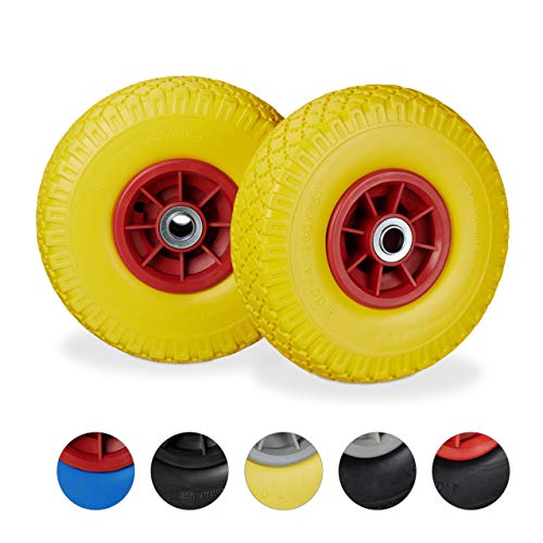 relaxdays 2X Ruote per Carriola, in Gomma Antipanne, 3.00-4", ASSE 20mm, Max.150 kg, 260 x 85 mm, Giallo-Rosso