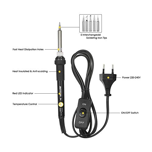 - ▲IMPUGNATURA IN SILICONE:l'impugnatura del saldatore è realizzata in silicone di alta qualità per garantire l'isolamento ed evitare scottature o scosse elettriche. Design antiscivolo per comfort e durata Il kit saldatore,Meterk garantisce una saldatura sicura ed efficace.