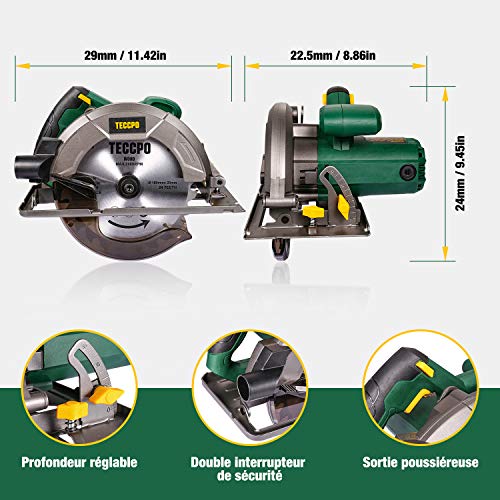 - ▶【Promozione di San Valentino】 1 x TECCPO TACS22P 1200W Sega Circolare, 1 x Lame di 185 mm, 1 x Righello di Scala, 1 x Chiave Esagonale, 1 x Manuale Utente, 1 x 2 anni promessa di qualità. È un'ottima scelta regalo per San Valentino per chiunque ami la lavorazione del legno.