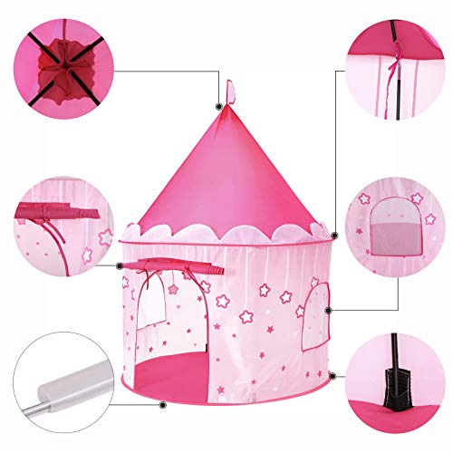 SONGMICS Tenda da Gioco Castello da Principessa per Ragazze e Bambini, Casetta dei Giochi per Interni ed Esterni, Tenda Portatile, Regalo per Bambini, Rosa LPT01PK