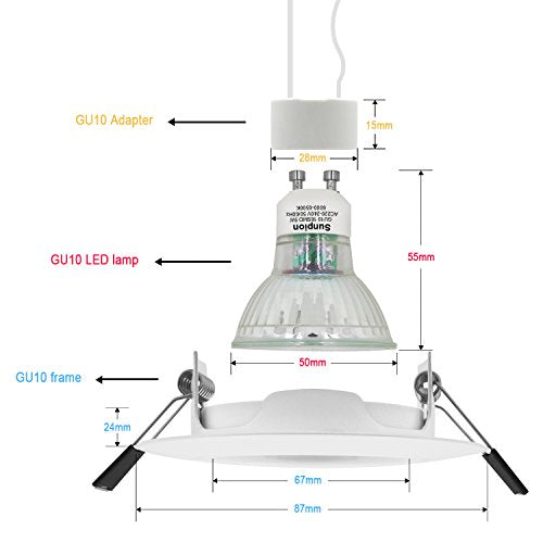 - ✔️Faretti da incasso, 6x lampadine GU10 + fortificazione + portalampade GU10 + Telaio di montaggio in metallo, collegati direttamente all'alimentazione 220V-240V, nessun trasformatore o altri accessori richiesti.