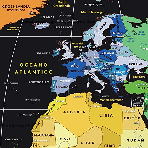• DESIGN NUOVO E UNICO - MuP! è la mappa più Amata in Italia per rapporto qualità prezzo e per soddisfazione dei clienti. Disegnata in Italia con tanta cura e amore. Un planetario dalle dimensioni perfette, con l'elenco degli Stati e delle Nazioni diviso per gruppo colore che rende facile l'individuazione del posto visitato. Illustrati i 25 posti e monumenti più belli del mondo, così da stimolare a visitarli nei prossimi viaggi. I colori brillanti, definiti e piacevoli la rendono bella da vedere