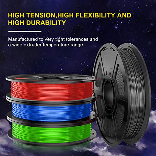 - High Purity&Strong Toughness: 1.75mm TPU filament is flexible, shape can be changed by external force and bounce back when the force disappears. Manufactured to very tight tolerances and a wide extruder temperature range, high hardness.